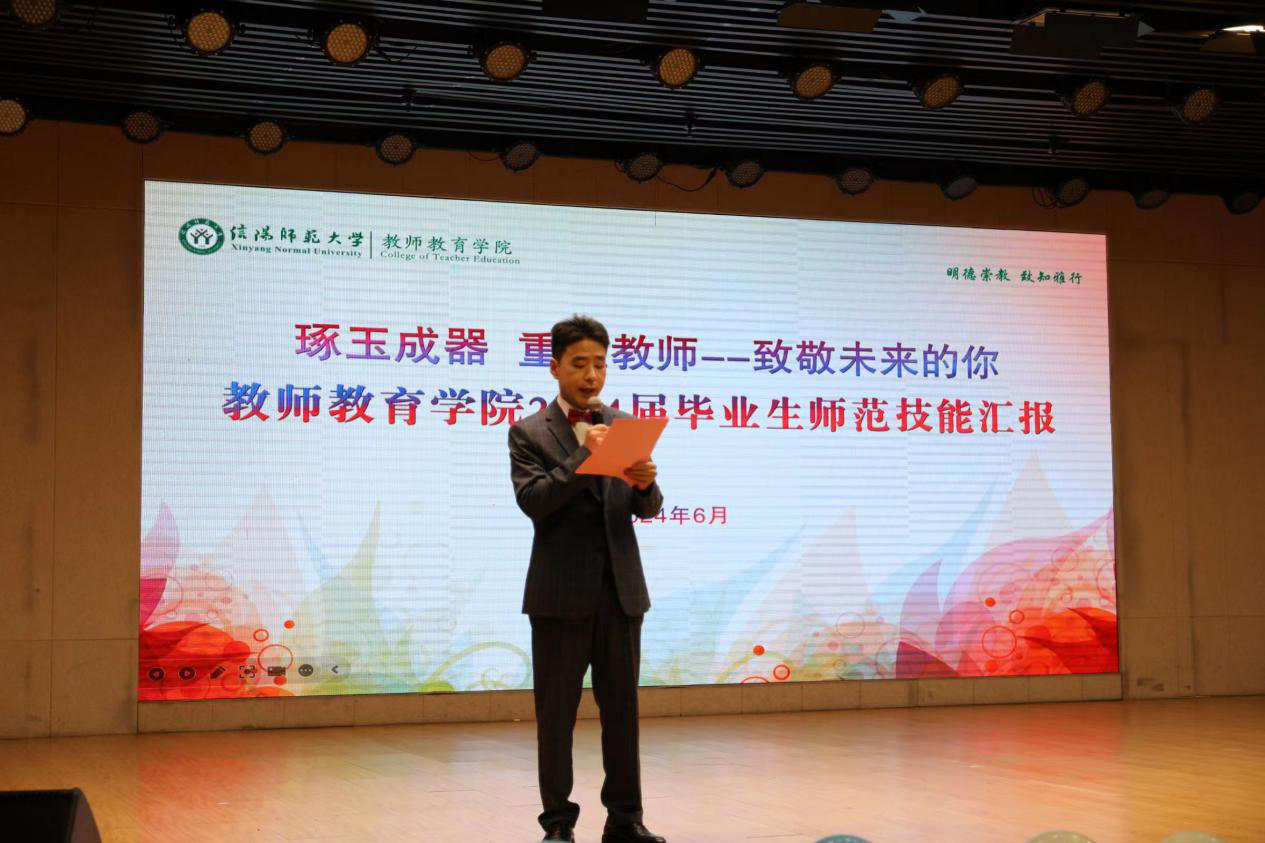 为检验伟的国际1946bv官网师范生专业教学成果,6月4日,伟的国际1946bv官网于理科楼报告厅组织开展2024届毕业生师范技能汇报活动。公司党委书记潘登,副书记王艳蕊、副经理李文田以及部分教师出席活动。活动由代元昊担任主持人。