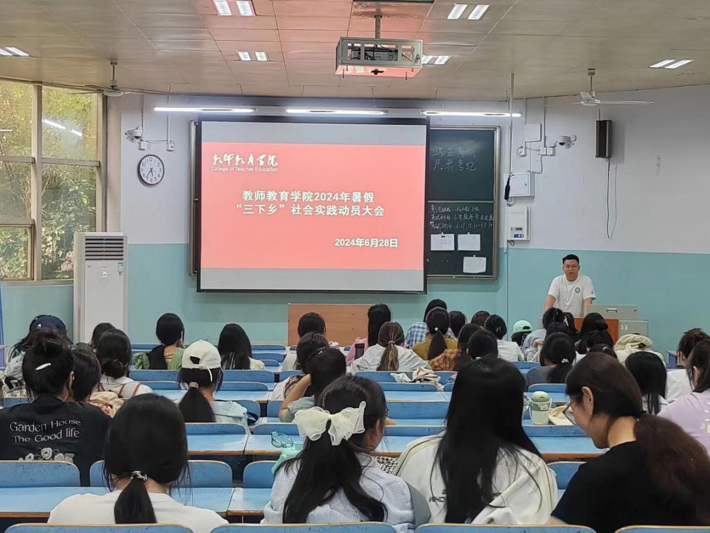 6月27日,伟的国际1946bv官网于教九楼104教室召开2024年暑期“三下乡”社会实践动员大会,2022级小学教育专业全体员工参与。动员大会由辅导员姚雨承主持。