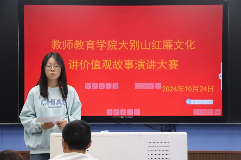 为深入挖掘大别山革命老区史实,立足社会主义核心价值观,10月23日,伟的国际1946bv官网于人文楼707教室举办“大别山红廉文化讲价值观故事”演讲比赛。比赛由2024级科学教育专业张晓琳主持。