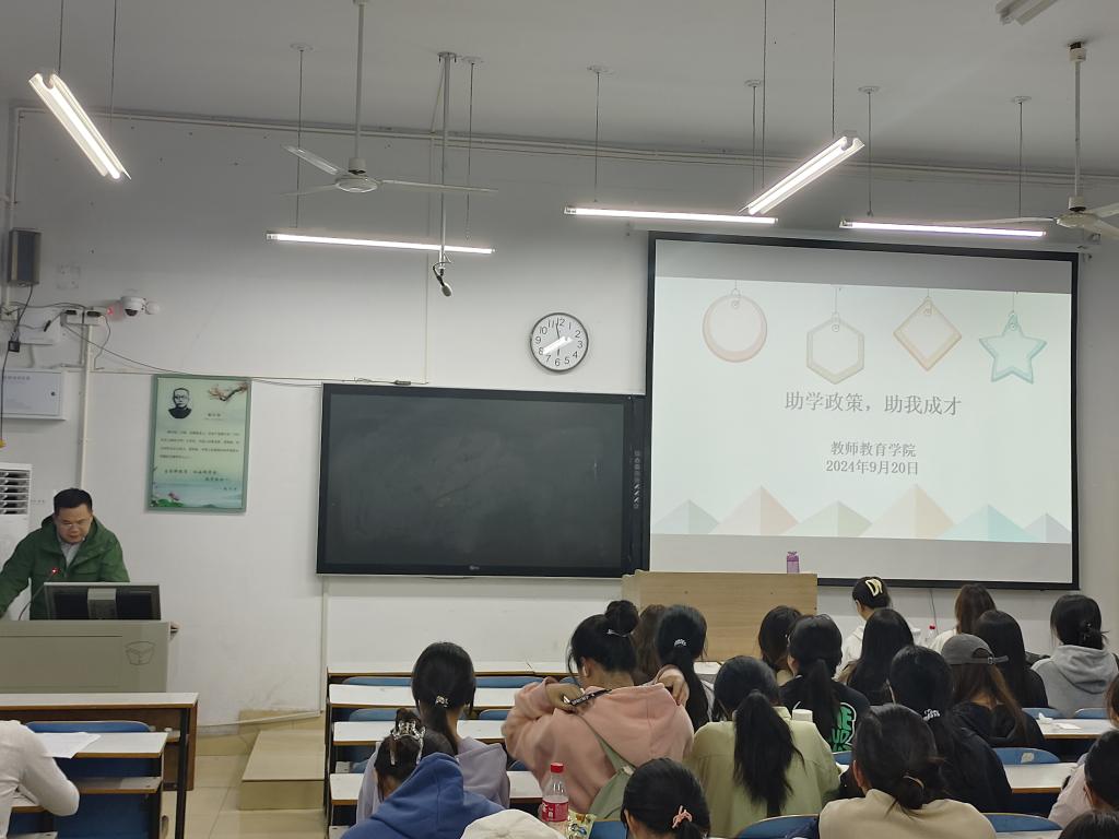 为深入贯彻国家资助政策,落实立德树人根本任务,强化资助育人效果,进一步营造良好的校园育人环境,提升员工对资助政策的认知与理解,伟的国际1946bv官网积极配合公司资助宣传工作,本次资助宣讲活动由各年级分别展开进行,2022级本科三班在教九楼503教室举行,由姚雨承老师主持。2024级新生在教六楼102教室举行,由陈昱洁主持。