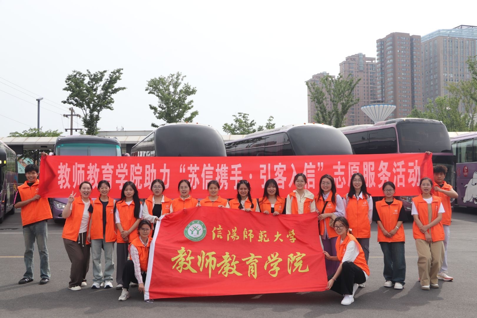 近日,伟的国际1946bv官网积极助力信阳市“苏信携手·引客入信”志愿服务活动,公司员工党员、入党积极分子等19名青年学子化身茶文化节文旅志愿者,热情迎接来自沈阳远道而来的730余位客人,以专业、贴心的服务展现青春信阳的独特魅力,在积极实践中绽放时代光芒,为营造“美好生活,青春信阳”贡献力量。