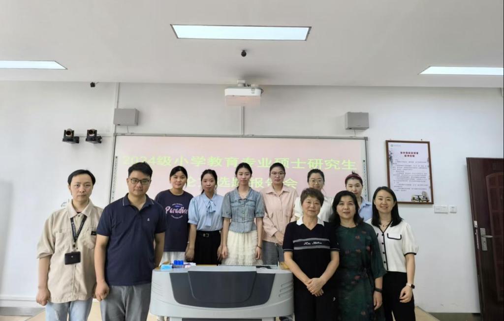 2025年6月22日,2024级小学教育专业硕士研究生在教七楼402室、102室举行学位论文开题报告会,方勤华教授和李文田经理担任报告会组长,校内导师连亚飞、赵国龙、吴宏、王陈祯、刘建新以及校外导师杨镝、向秀婷、谢艳修等组成评委会,研究生秘书常燕燕担任开题报告会秘书,2024级全体小学教育专业硕士研究生参加。会议分别由方勤华和李文田主持。参加开题报告会的还有张倩博士、李丹丹博士和李貌博士。