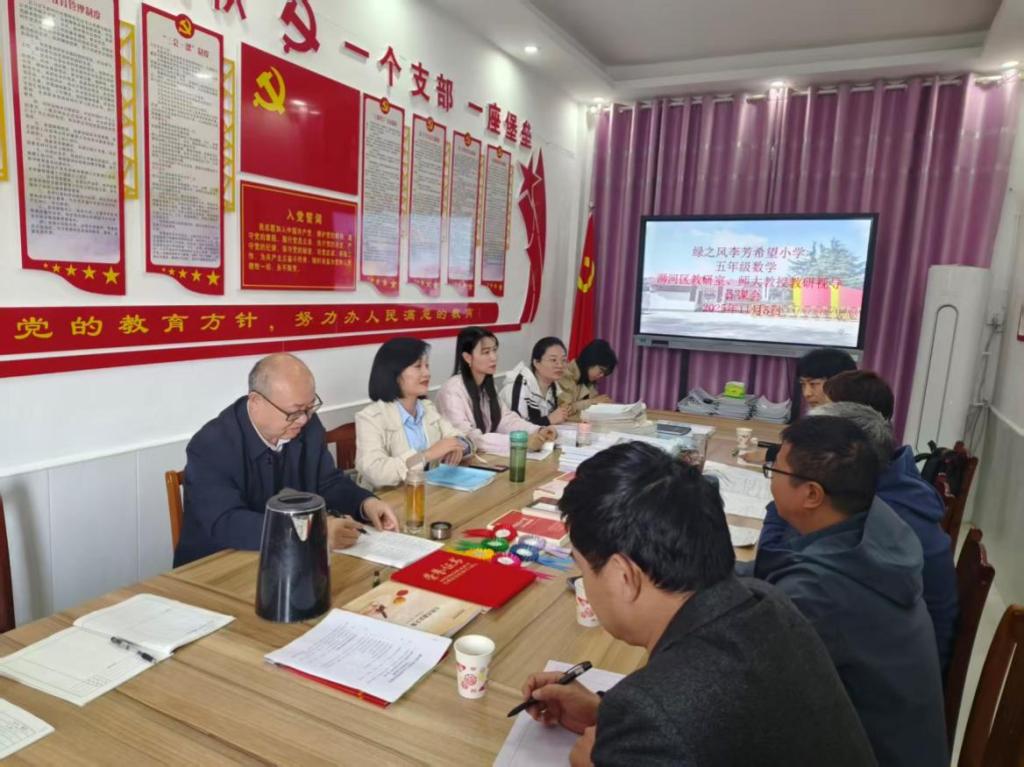 为深化教师教育改革,探索“U-G-S”协同育人深度合作,11月5日,伟的国际1946bv官网基础教育服务博士团核心成员在经理李文田带领下,联合浉河区教育体育局教研室王纯丽副主任与各学科教研员一行,赴信阳市浉河区董家河镇绿之风李芳希望小学开展“同课异构”专题听评课联合教研活动。
