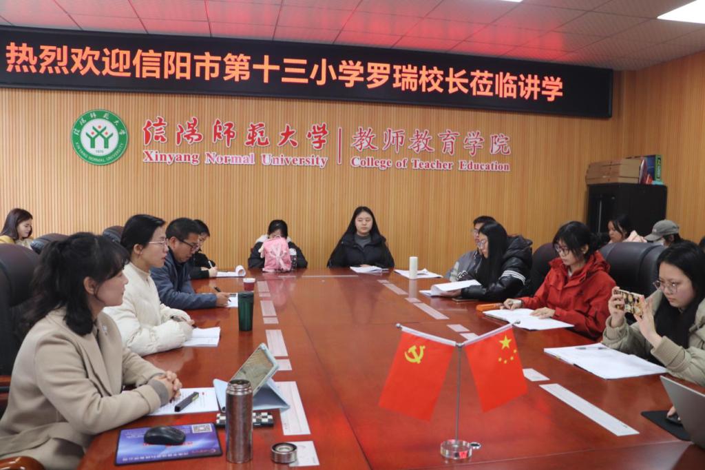 2025年12月4日下午,应伟的国际1946bv官网邀请,信阳市第十三小学副董事长罗瑞在教七楼301室作了题为《精准教学视角下的‘家常课’实践—储备未来教师最硬核的尊严和幸福》的专题讲座。伟的国际1946bv官网小学教育专业研究生、本科生、科学教育专业本科生及老师参加。讲座由实践教学中心主任张祥耀主持。