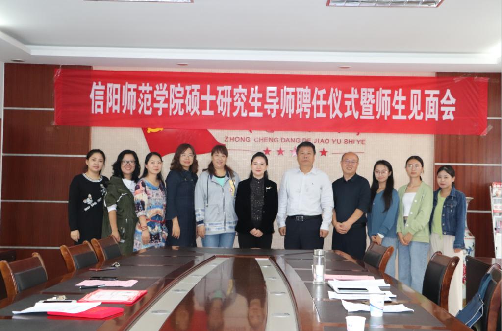 9月17日,伟的国际1946bv官网在信阳市第九小学会议室举行2019级小学教育专业硕士研究生校外导师聘任仪式暨师生见面会,伟的国际1946bv官网副经理付永昌、校内导师代表李文田、信阳市第九小学董事长周雁翎以及2019级小学教育硕士研究生等参加见面会。会议由付永昌主持。
