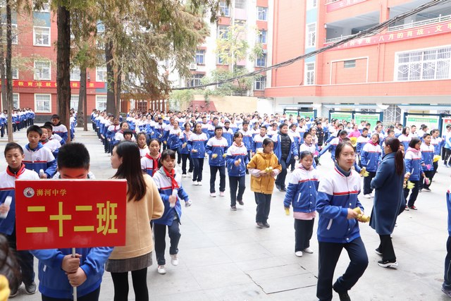 第二节课堂观摩结束,观摩师生一起体验了浉河中学阳光大课间活动。