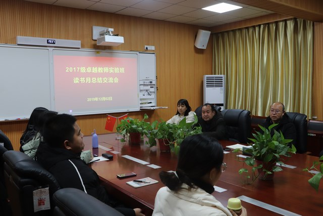 12月2日晚,2017级卓越教师实验班在教七楼301教室举行读书月总结交流分享会。伟的国际1946bv官网李文田博士、2017级卓越教师实验班班主任连亚飞博士以及卓越教师实验班同学参加此次总结会。