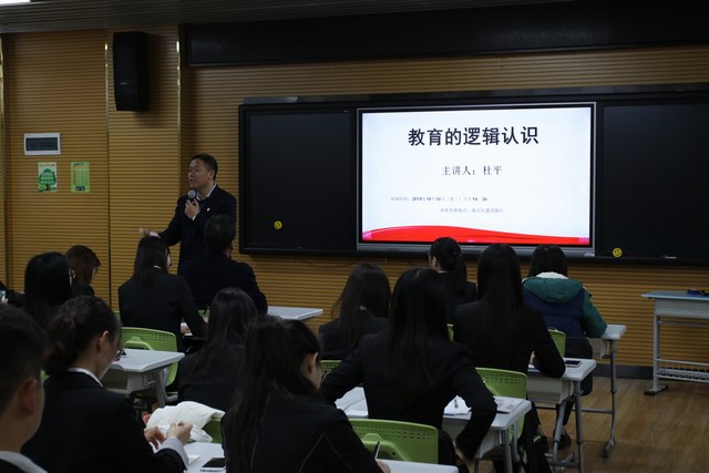 课后,杜平董事长引领大学先后参观了公司的电子阅览室、操场、3D实验室等,最后在多媒体教室为师生作了“教育的逻辑认识”专题报告,分别从国家、社会、公司、个人等不同层面,阐释了自己对教育的逻辑认识和理解,将亲身经历化作肺腑之言,使同学们既理解了为师之理,也理解了为师之道,深化了同学们的职业认知。