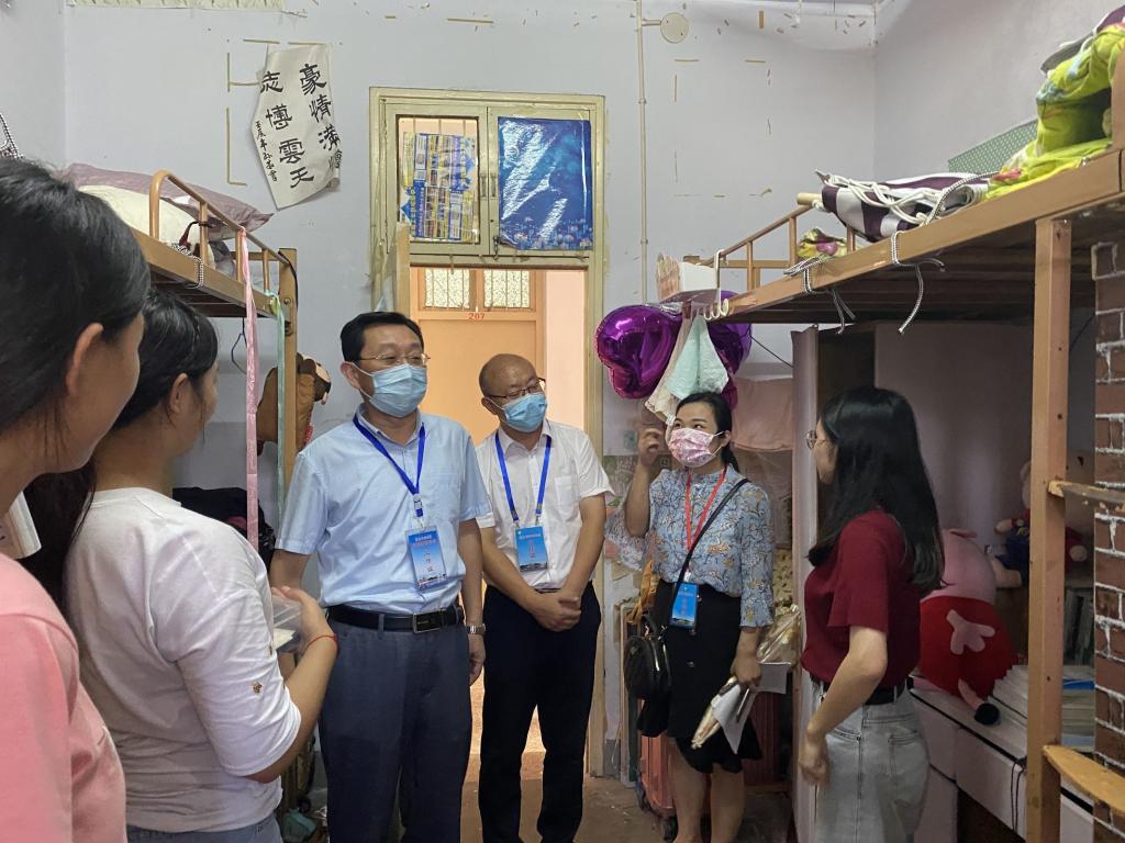 走访过程中,老师们与大家亲切交谈,了解同学们的假期生活,察看员工住宿条件,叮嘱员工尽快适应新学期生活,积极调整学习状态;特殊时期佩戴好口罩,勤洗手,做好自身体温监测和上报,保持宿舍卫生清洁、通风,不互相串门,注意个人防护;希望同学们能够合理安排时间,静下心,多读书学习,争取早日做一名合格的小学教育全科教师。