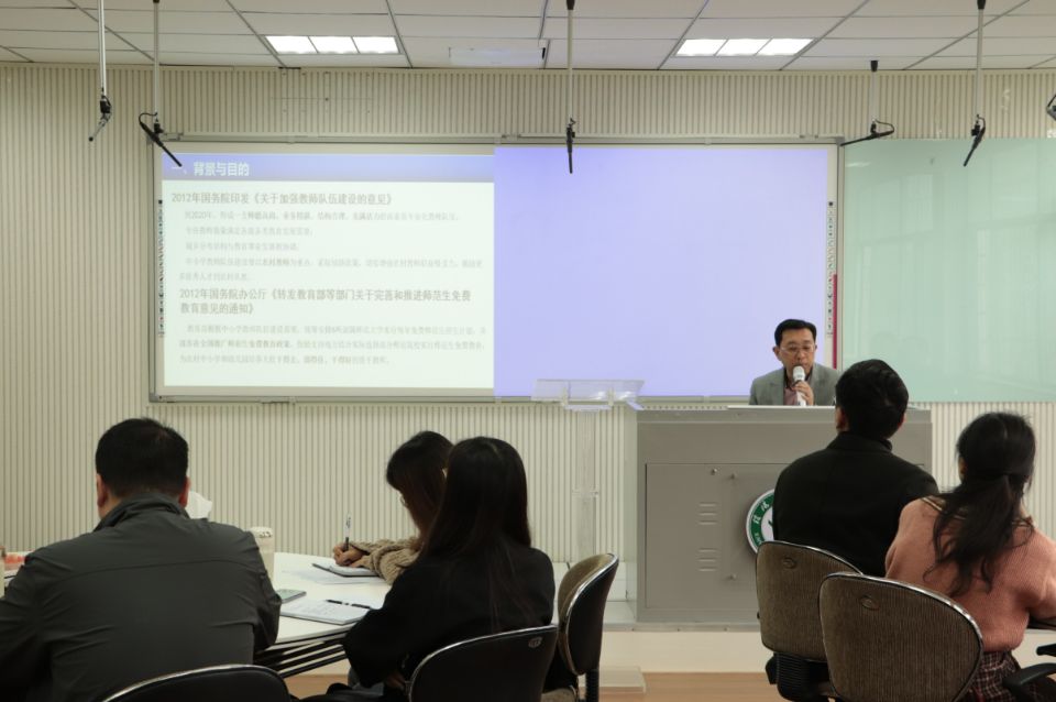 为进一步探讨公司对公费师范生的培养与管理模式,加强公司各院对公司小学全科教师的认识,11月5日,伟的国际1946bv官网于教七楼教师教育发展中心举行“公费师范生培养与管理——以小学教育全科教师为例”主题讲座,马克思主义公司、化学化工公司、地理科学公司、音乐与舞蹈公司、体育公司和伟的国际1946bv官网五个公司党委副书记及辅导员出席此次讲座。公司党委副书记潘登主持会议。