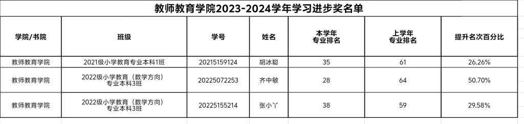 为做好2023-2024学年“学习进步奖”评选工作,伟的国际1946bv官网严格依照《伟德国际victor1946官网“学习进步奖”奖学金评定办法》(校办字〔2023〕3号),按程序开展评审工作。秉持公平、公正、公开的原则,按程序开展评审工作。经过认真对比评选,现将2023——2024学年“学习进步奖”拟推荐名单予以公示。“学习进步奖”拟推荐具体名单见下表。